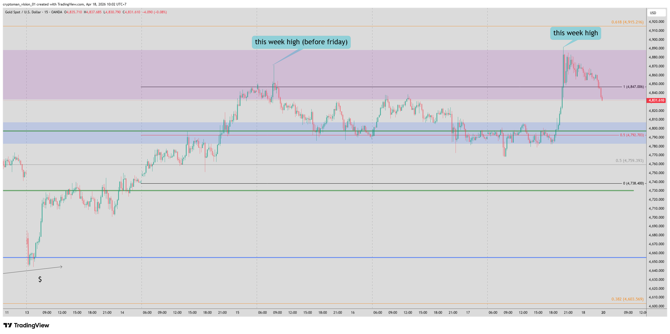 Kịch bản 2 => đánh xuống: thì chúng ta chờ sang tuần xem giá có quay lại kiểm tra last week high lần nữa và bị từ chối thì mới tìm điểm sell
